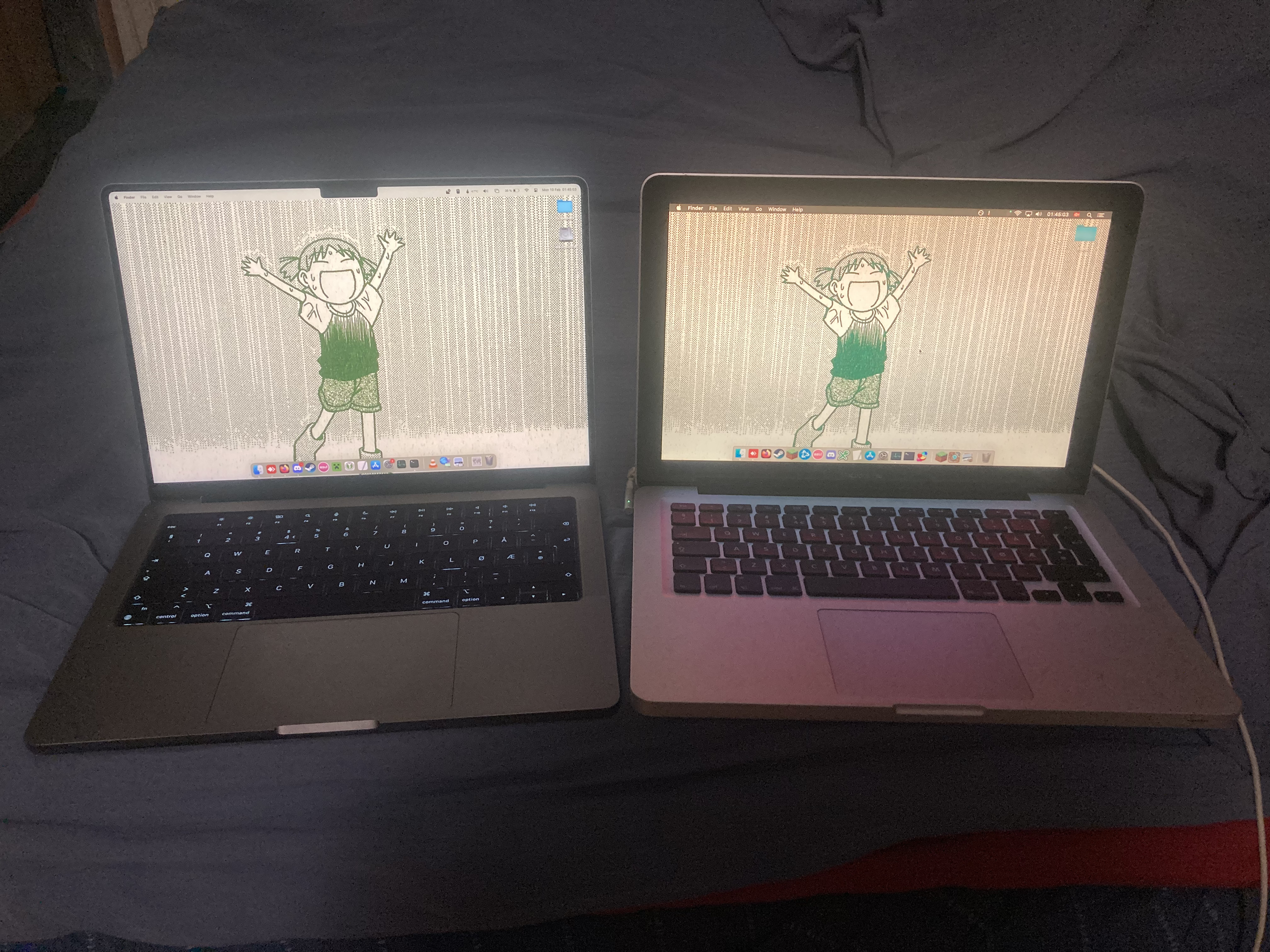 The speakers on my new machine are a lot better than the ones on my old machine, but in just the same way as with the screen, this mostly goes unused. My new Macbook's speaker can get quite a bit louder without distorting. Very nice if you need an impromptu Spotify machine at a party. Not needed at all for what I use it for. I don't think I've ever used the speakers at more than 50% other than when showing them off or testing them. The keyboard on my old machine was straight up better then on my new one. Guess that's what happens in the name of making them thinner. Same goes for the glow-up Apple logo on the back. I liked that. It had charm. Now it's just a black logo.